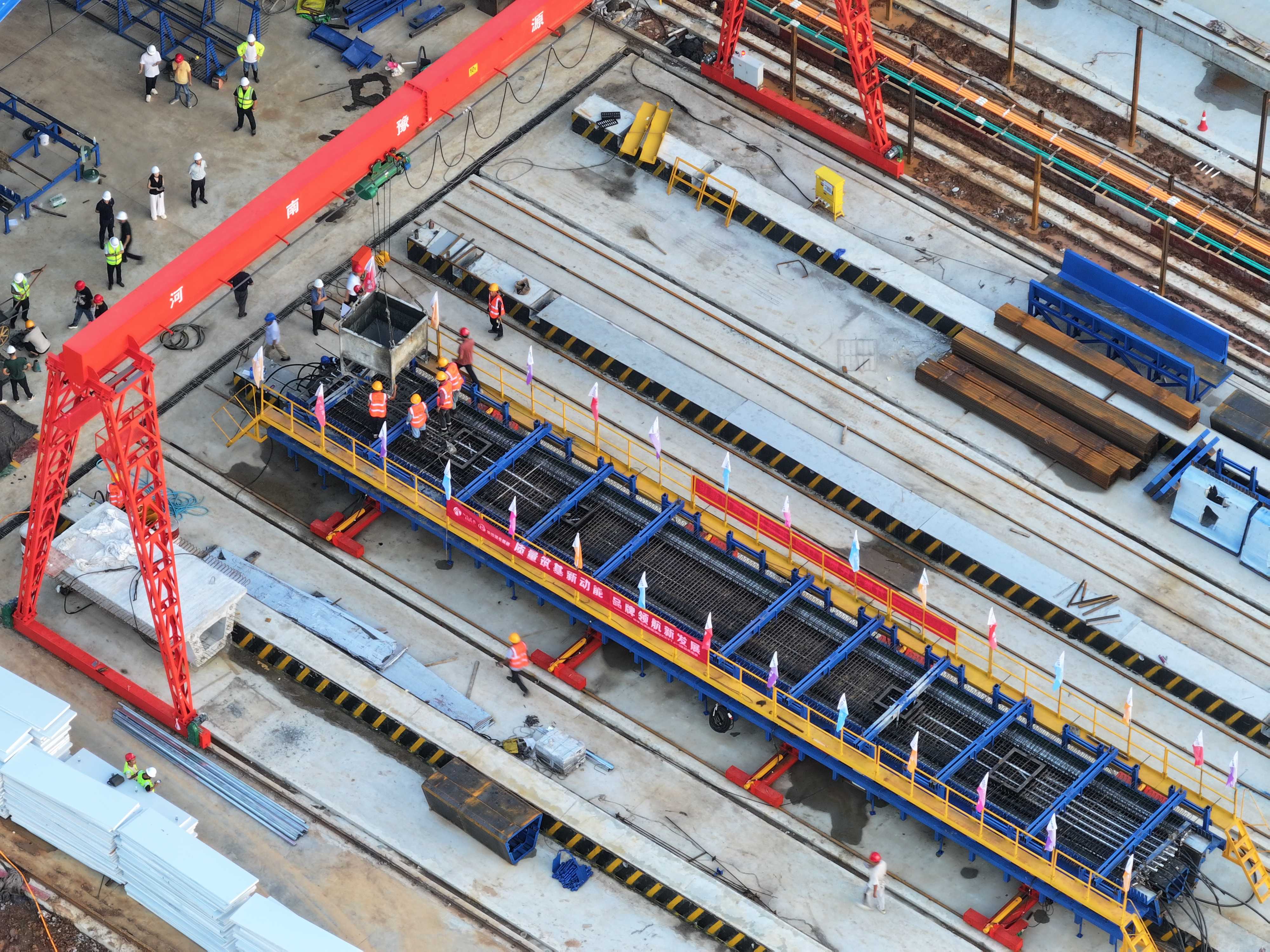 圍繞施工總體部署,項目黨支部系統(tǒng)梳理每個季度的攻堅任務(wù),制定詳細(xì)的“三清單兩圖”(任務(wù)清單、責(zé)任清單、時限清單,作戰(zhàn)圖、進度圖),并實行領(lǐng)導(dǎo)班子包保責(zé)任制,將責(zé)任壓實到人。在黨員先鋒的帶領(lǐng)下,項目先后順利完成了首件樁基澆筑、首件墩柱成型、首片梁預(yù)制等多個關(guān)鍵節(jié)點,為后續(xù)大規(guī)模施工奠定堅實基礎(chǔ)。
